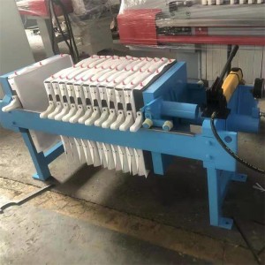 The hand pump filter press always used for small size filter press. The filter press is operated very easy without electricity and hydraulic system. Hand pump is used for the pressure holding device. Once the plates are closed by hand, hand pump will lock the pressure and hold it so as for the feeding slurry…